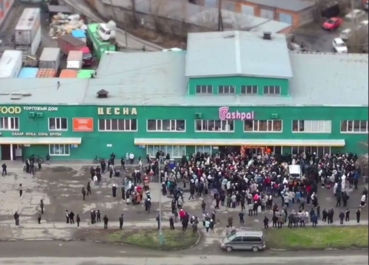 Как только двери распахнулись, толпа ломанулась, сметая всё на своём пути. Как писали некоторые пользователи соцсетей, после просмотра видео стало как-то стыдно за земляков.