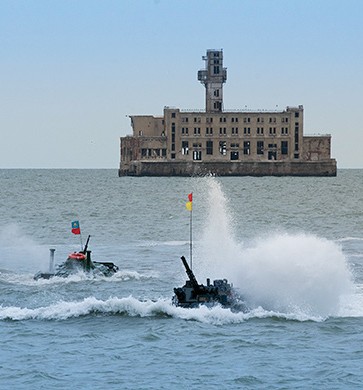 На “Кубке Каспия” битва развернулась между командами надводных кораблей четырех стран. В этом конкурсе моряки состязались в поражении малоразмерных морских и воздушных целей, плавающих мин, спасении корабля, “терпящего бедствие”, и физической подготовке военнослужащих.