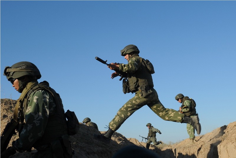 Учения проходили во взаимодействии с силами воздушной обороны Казахстана. Подразделения специального назначения осуществляли наведение целей фронтовой авиации с применением лазерных устройств.