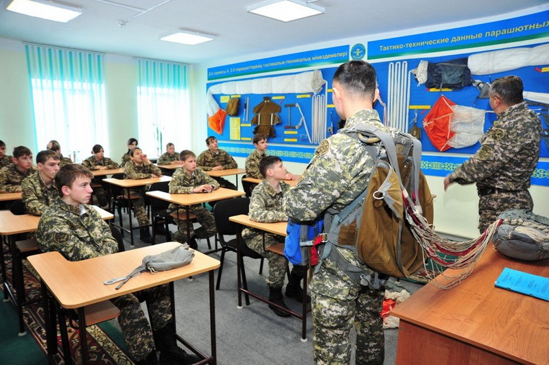 Военнослужащие бригады войсковой части 68665 близ Астаны провели с ребятами занятия по воздушно-десантной подготовке, рассказали и показали различные виды парашютных систем.