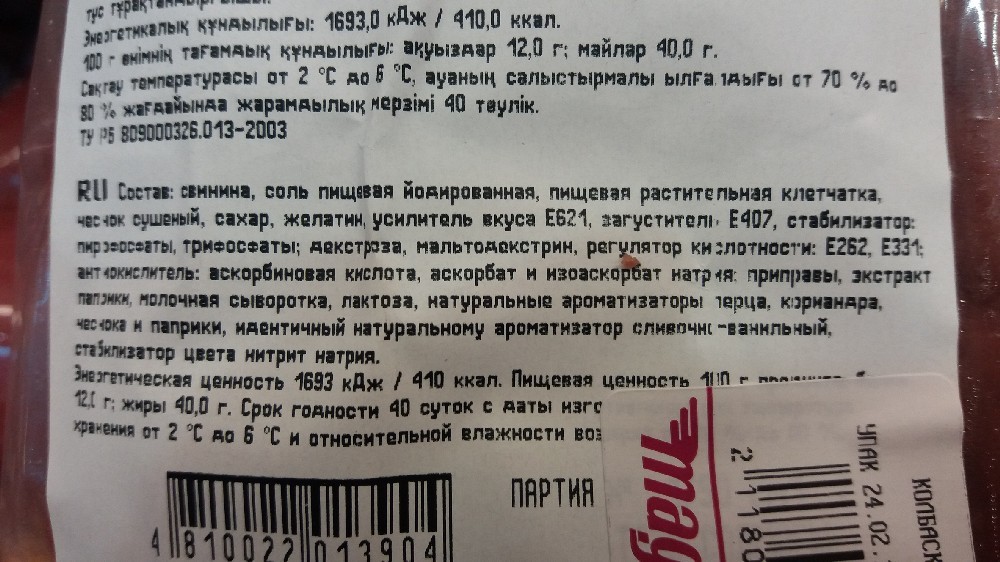 Будем надеяться, что производитель с нами честен - ничего не утаил и включил в состав все то, что он использовал для производства данного конкретного продукта. Важный момент - это последовательность расположения ингредиентов. Первыми указывают основные ингредиенты, и далее - по убыванию. Стало быть, в колбасе на первом месте должно быть мясо, в молочных продуктах - молоко, в шоколаде - какао-масло и какао-бобы.