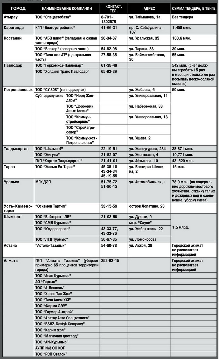 Мощные снегопады еще до начала календарной зимы обозначили главный вопрос недели: кто отвечает за расчистку казахстанских городов от снега и как эти организации справляются со своими обязанностями? Мы решили опубликовать список компаний, выигравших тендеры на снегоуборочные работы, чтобы страна знала своих “героев”.