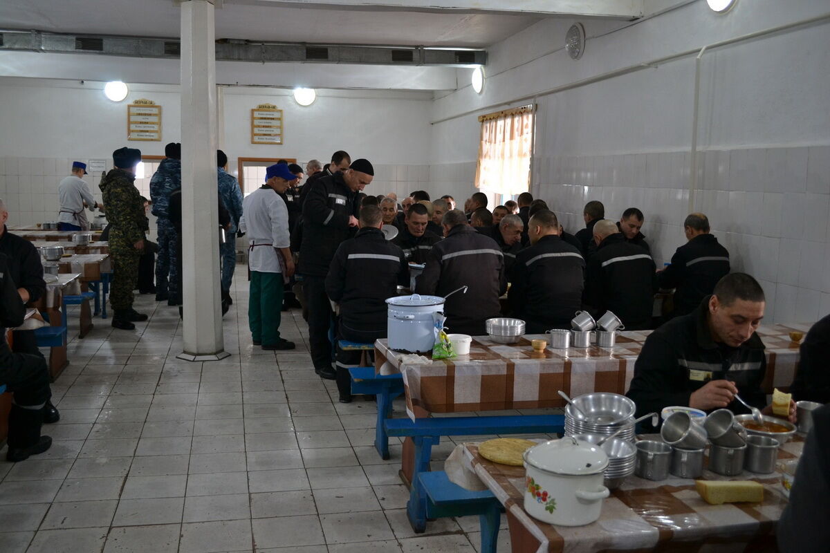 В камерах содержится по 5-20 человек, то есть тип содержания не барачный. Есть зал для культурно-массовых мероприятий, теннисный стол: футбольное поле, спортивные площадки, просторная чайхана. Медицинский кабинет полностью оснащен нужным оборудованием: рентгеном, флюороустановкой, стоматологической и УЗИ-аппаратурой, кардиографом.