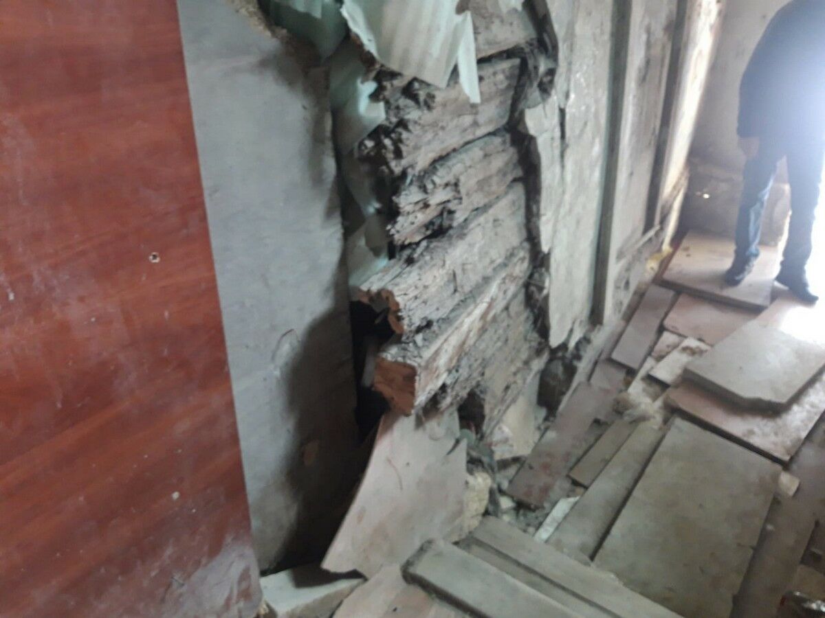 А тем временем каждый месяц люди платят по 7-10 тысяч за обслуживание домов. Они недоумевают, за что они платят, если крыша течет, а лестницы и полы проваливаются. Где-то жильцы сами залатали полы досками и ДСП. А в одном из домов от ветхости разрушилась лестница, и жильцам второго этажа пришлось снимать другое жилье.