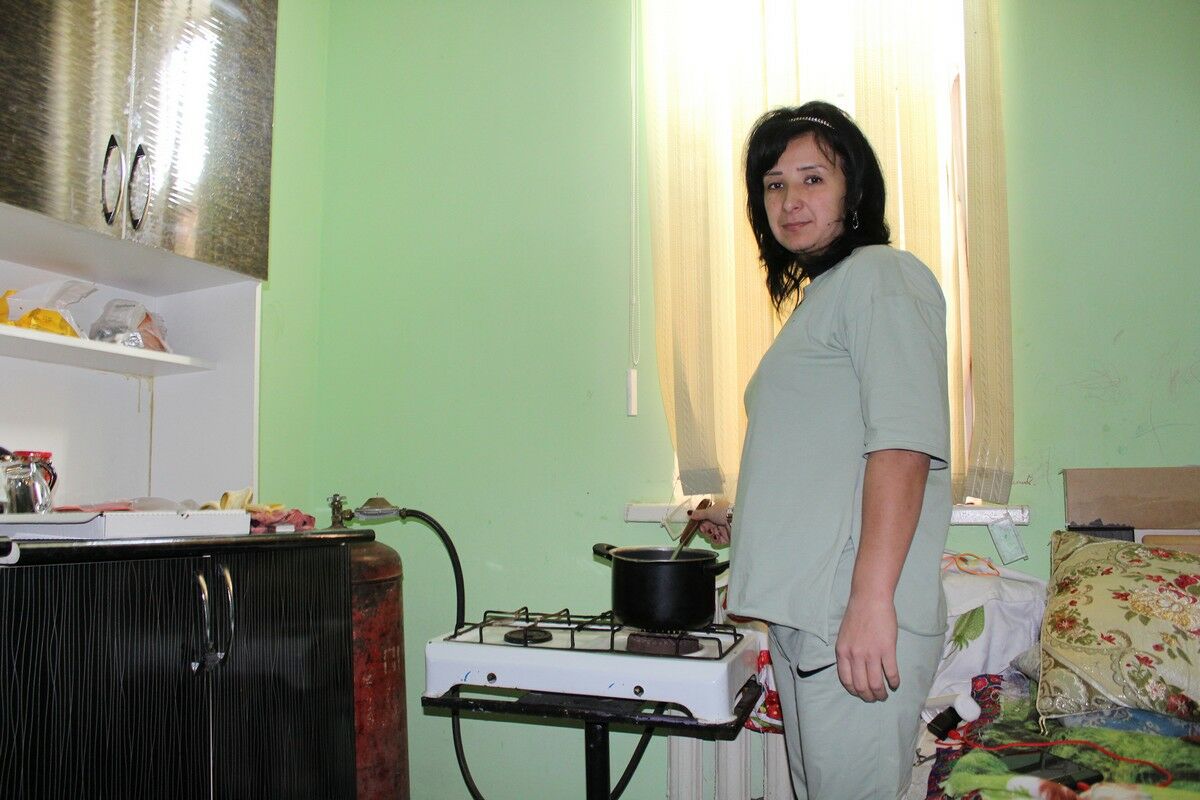 Вместе с детьми она ютится в комнатенке, в которой и спят, и готовят еду.