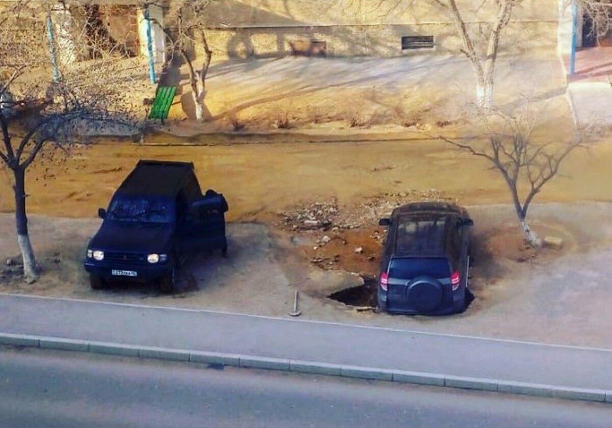 А во вторник средь бела дня возле одного из домов 14-го микрорайона ушел под землю припаркованный автомобиль. Прямо под ним произошел прорыв трубопровода, почву размыло, образовалась яма, в которую и угодила машина.