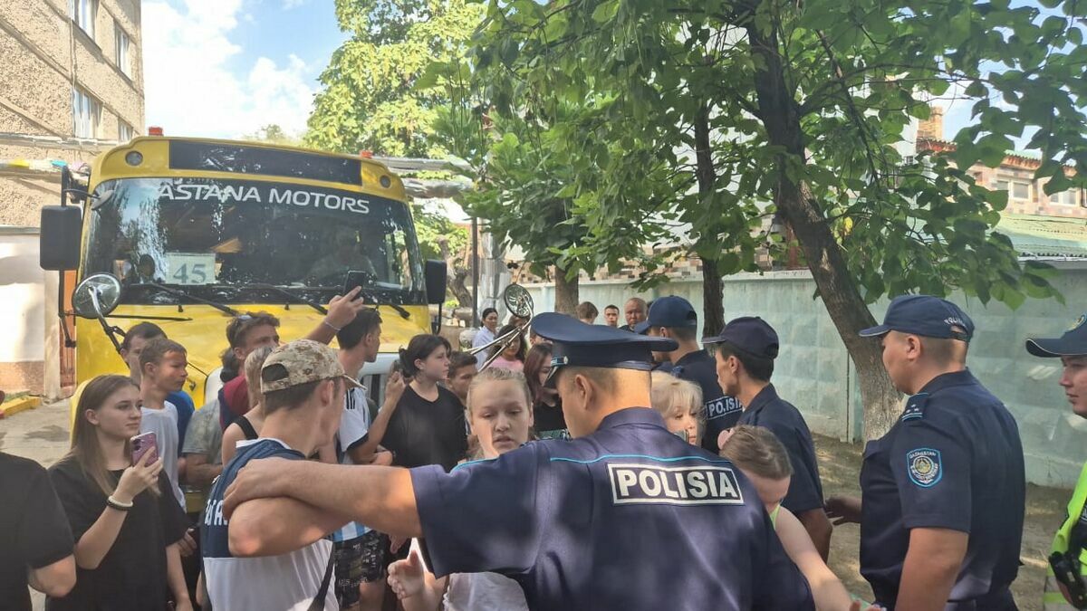 "Мы своих братьев и сестер не дадим в обиду, эти дети тоже против переезда в Конаев, там вокруг болота", "Это наш дом, стоим до последнего! Руки прочь!", "Нам же акимат обещал, что переезда не будет!" - наперебой кричали подростки. После они дружно встали перед автобусом, преградив ему проезд.