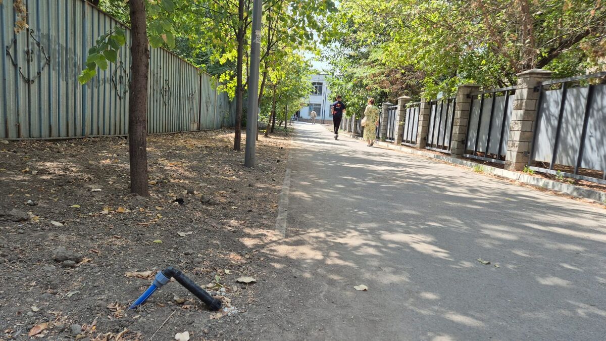 В целом система полива обходится недешево. За 290 км автоматизированных сетей, запланированных на весь 2025 год, город заплатил 4,1 млрд тенге. Что мы видим по факту? Повсеместно торчащие кривые трубы да неработающие сплинкеры (разбрызгиватели). К примеру, их уже частично лишилась обновленная этим летом аллея в микрорайоне “Аксай-4”, между улицами Жубанова и Улугбека.
