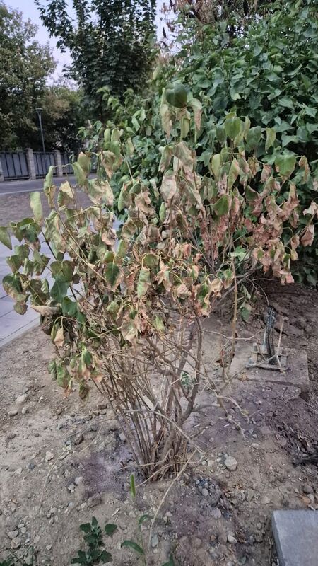 С мая, когда началась жара, алматинцы стали выкладывать в соцсетях фото- и видеоматериалы, как погибает городской зеленый фонд. В конце лета расширилась география улиц, где деревья раньше времени сбросили листву. Так, погибают зеленые насаждения вдоль улицы Калдаякова, от Курмангазы до Кабанбай батыра. По улице Жарокова, ниже Аль-Фараби, засохли каштаны. Пожухла сирень по улице Курмангазы, между Сейфуллина и Масанчи. Молодые деревца массово скукожились в микрорайоне “Кокжиек”, в парке “Желтоксан”. И этот список алматинцы могут дополнять бесконечно!