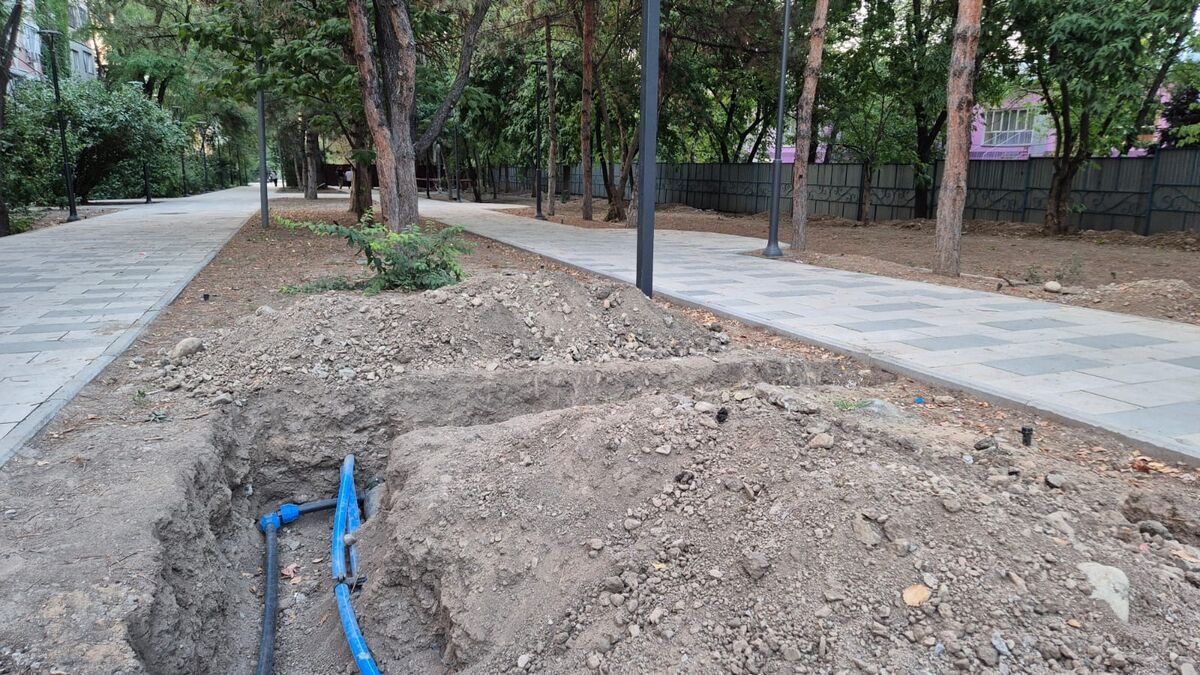 - Исторически была ветка по улице Жарокова от арыка, что проходит в микрорайоне “Казахфильм”. Ответвление заходило в парк, потом шло ниже. В арыках стояли металлические заслонки. Сейчас во многих местах вместо них - камни и мешки с песком. В парке имеются накопители воды, но емкостей не хватает. В целом ошибок много, это мы поняли спустя годы. Поливочная система требует тщательного ухода инженеров, а люди постоянно меняются. В текущем году ее запустили только в июле, хотя должны были в мае.