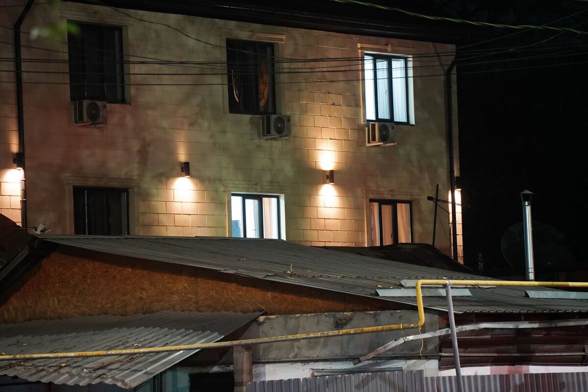 Вот трехэтажный многоквартирный дом по адресу: ул. Жансугурова, 54. Он расположен на новой городской развязке. Днем она поражает полями газонов и перманентно работающим поливом. А ночью здесь солирует 54-й дом - бывшая общага (сейчас квартиры в ней приватизированы). Сверкает так, что не то что белкам - людям глаза режет! При этом на развязке достаточно фонарей, по тротуарам близ нее тоже. Можно было нарядить к ночи и другой раритет - благо темных закоулков в районе хватает.