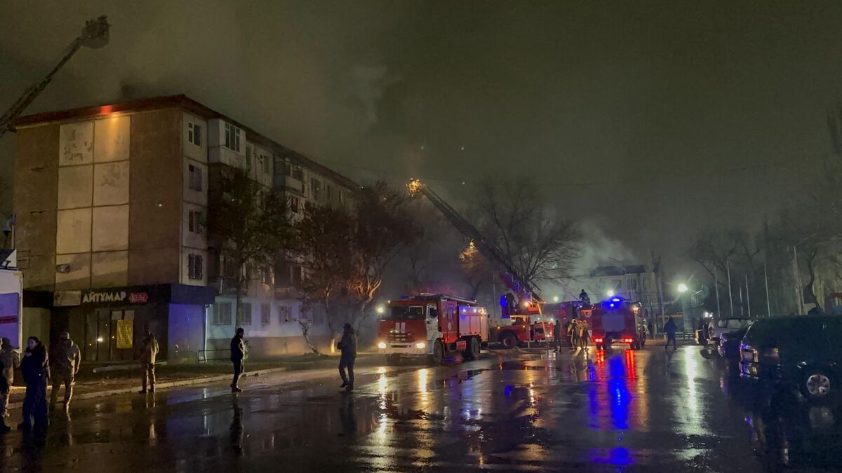 Пожар вспыхнул около 23.00 в одной из пятиэтажек микрорайона “Карасу”. По информации акимата Тараза, возгорание началось на балконе квартиры на пятом этаже, после чего огонь распространился на крышу. Площадь пожара на кровле составила примерно 900 квадратных метров.