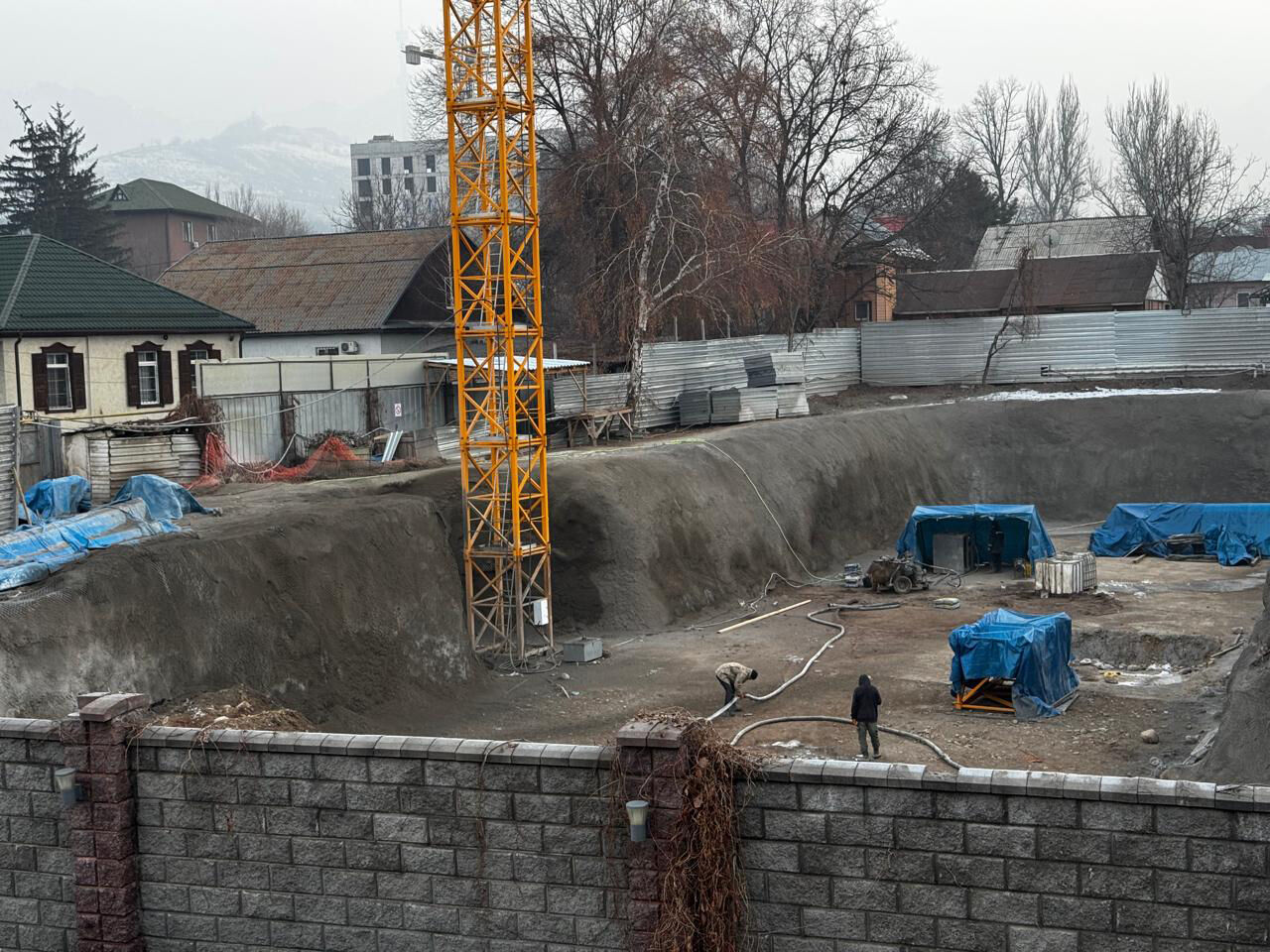 Генеральный подрядчик - ТОО "QazProQurylys" - вырыл котлован практически вплотную к заборам соседей, появилась угроза, что строения могут сползти в гигантскую яму. А стрела башенного крана нависла над домами и участками, вызвав шквал возмущения их владельцев.