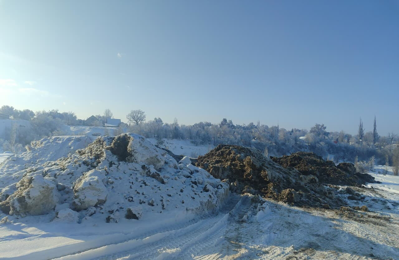 Снег с улиц города Талгара Алматинской области гигантскими кучами складируют рядом с рекой. Местные жители недоумевают: неужели не нашлось другого места, ведь снежок не "белый и пушистый", а черный, с примесями бензина и мусора!