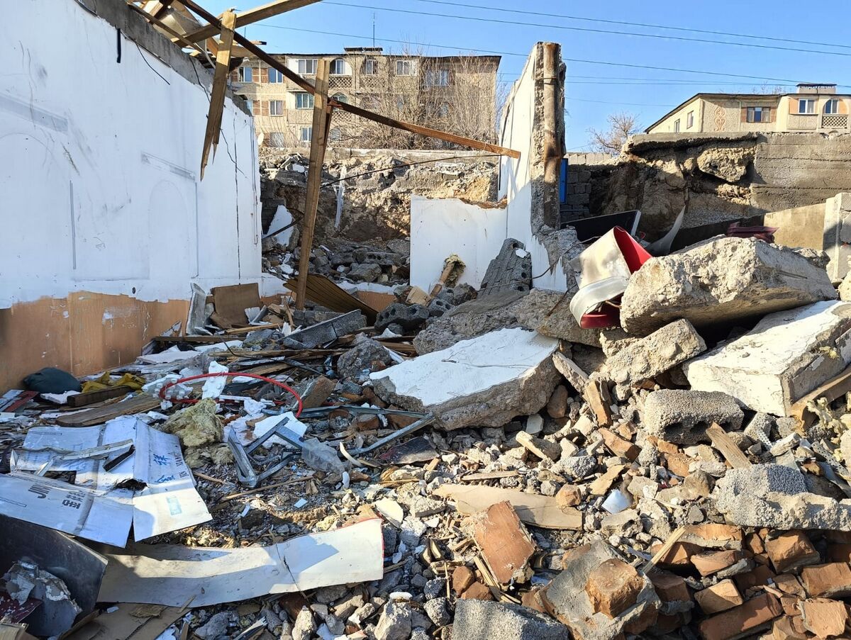 Несколько сот метров вправо от их магазинов вдоль того же проспекта Жибек жолы - и там ситуация уже другая: часть участков у владельцев акимат все же изымает под госнужды, а значит, будут и выплаты. Снос на этом участке начался в середине февраля, и сейчас территория выглядит словно после разрушительного землетрясения. От торгового ряда, где еще недавно располагались строительные магазины, аптеки, ателье, парикмахерские и прочее - всего около 30 объектов, остались одни руины.