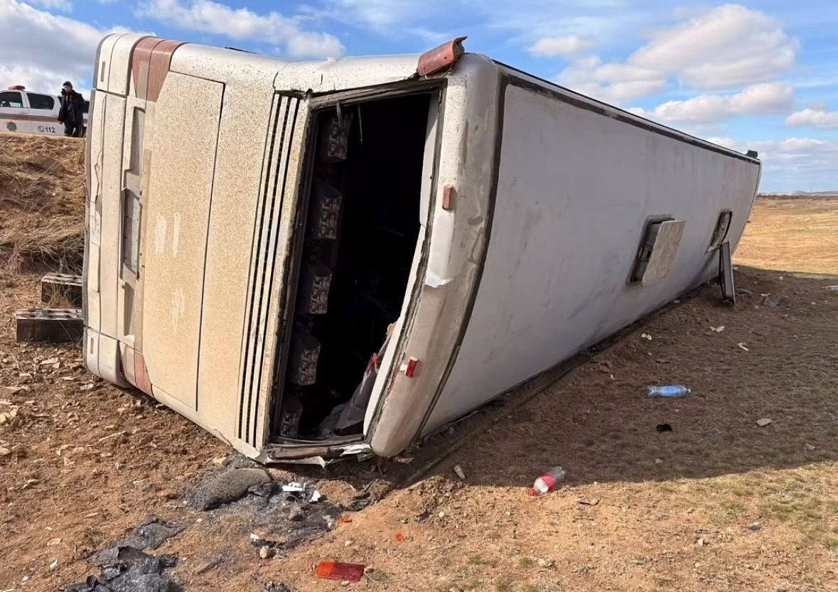 В Каркаралинском районе Карагандинской области перевернулся вахтовый автобус с рабочими. Пострадали более 30 человек.