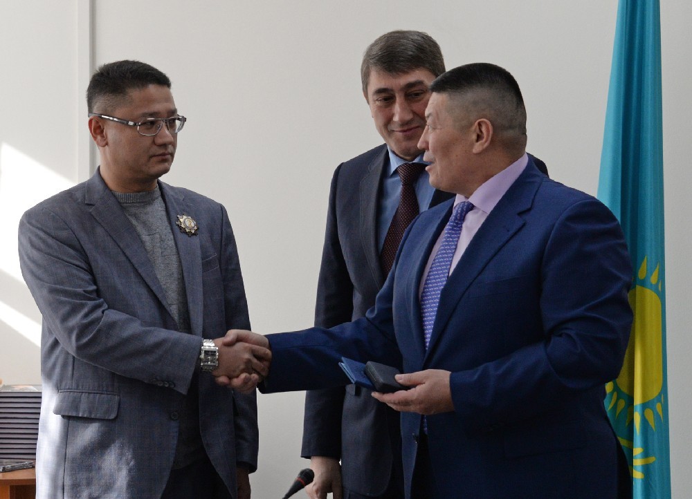 В пятницу в Алматы корреспондента газеты “Время” Тохнияза КУЧУКОВА наградили орденом “Сағадат сардар” имени первого министра обороны, Халык Кахарманы, Героя Советского Союза Сагадата НУРМАГАМБЕТОВА.