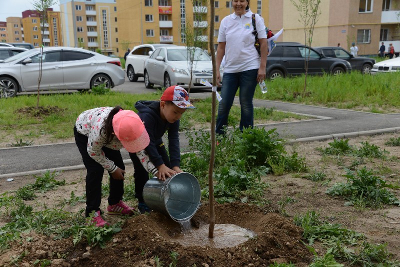 В новом микрорайоне “Саялы”, где свыше 600 семей получили квартиры по программе “Доступное жилье-2020”, посадили 200 молодых деревьев.