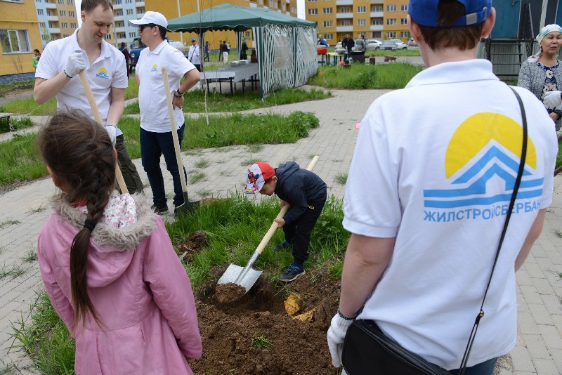 Инициативу сотрудников Жилстройсбербанка поддержали местные жители, которые приняли активное участие в посадке саженцев.