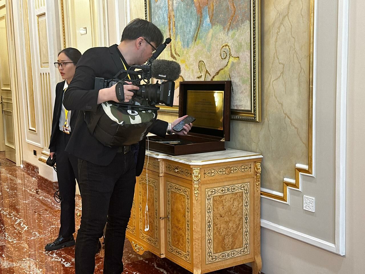 К расширенным переговорам, доступ к которым имеют и члены делегаций, и журналисты, готовились строже. Перед входом монгольская делегация дисциплинированно сложила телефоны в специальный контейнер с надписью: «Просьба оставлять мобильные телефоны!» — чтобы ничто не нарушило ход встречи.