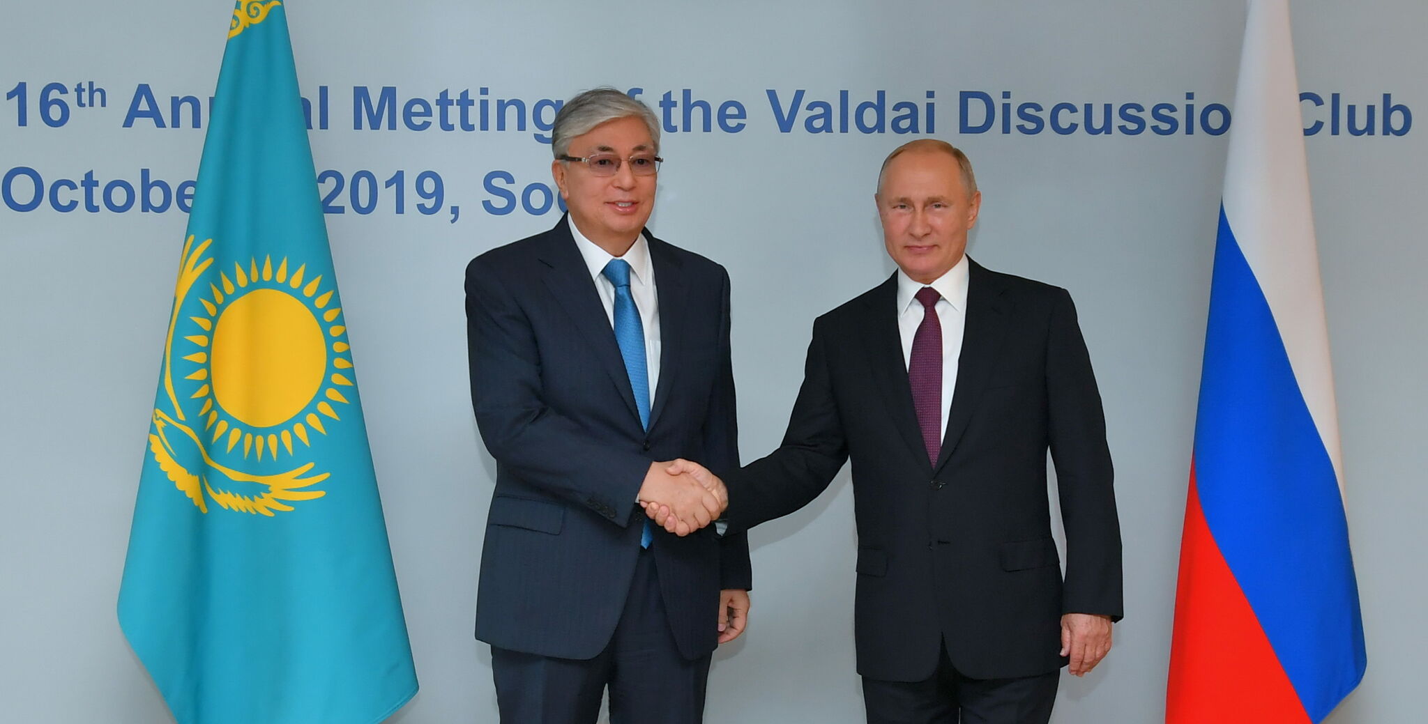Приветствуя главу Казахстана, президент РФ отметил большое значение, которое придают в России участию Касым-Жомарта Токаева в работе клуба “Валдай”: