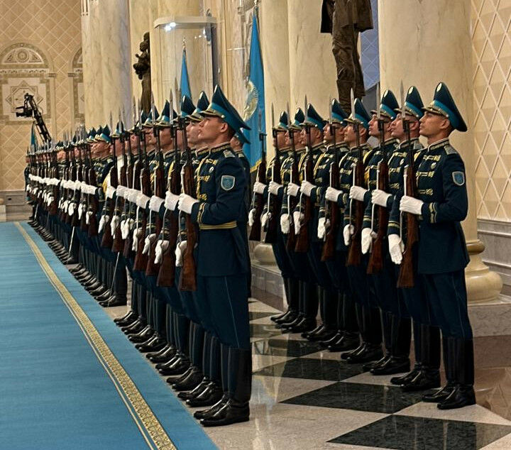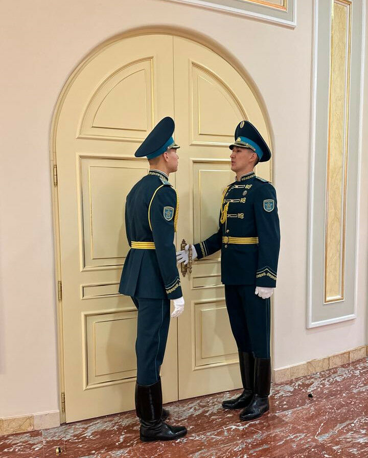 Наконец в зале появляется глава Казахстана Касым-Жомарт ТОКАЕВ. Он выходит навстречу Николу Пашиняну, уверенно протягивает руку – знак официального, но теплого приветствия. После всех формальностей президенты поднимаются на лифте - туда, где решаются судьбы двусторонних отношений. Для всех остальных наступило ожидание. В зал к лидерам никого не впускают. Двери — массивные, белые, рядом с ними — опять же почётный караул.