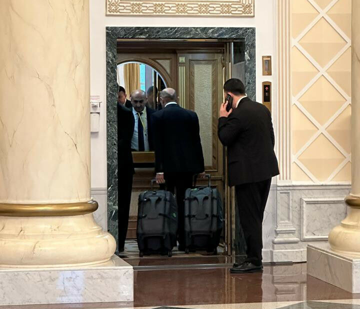 Их действительно много - это видно по тому, как мужчины буквально переносят вес на каждую ступеньку. Чемоданы поднимают наверх в лифте - всё строго, всё под охраной.