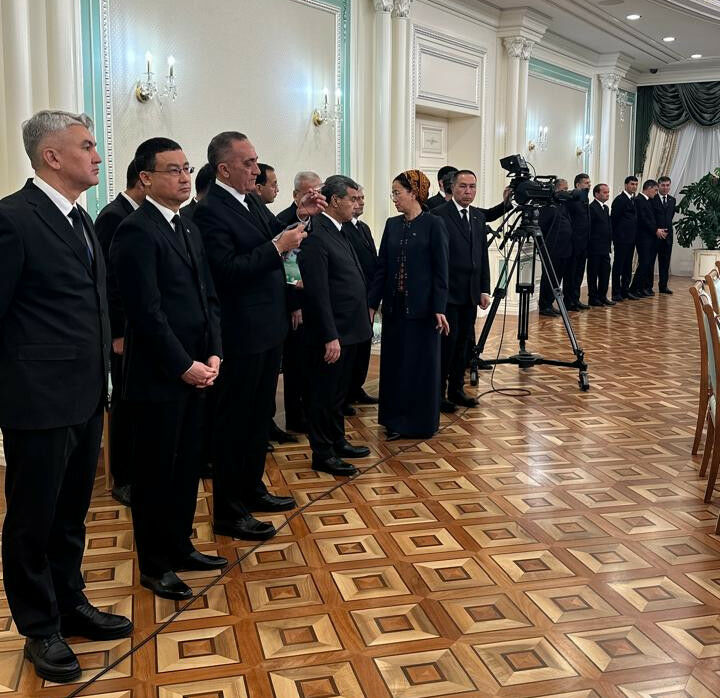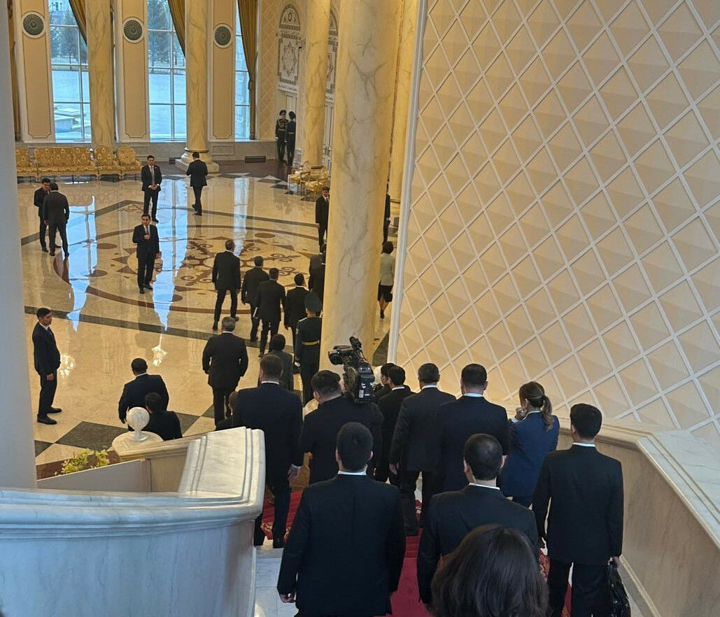 Наконец президенты вернулись, чтобы провести расширенные переговоры. Как только Касым-Жомарт Токаев начал говорить, вся туркменская делегация синхронно открыла блокноты и начала записывать. Когда Токаев объявил о решении наградить Бердымухамедова высшей госнаградой - орденом "Алтын Қыран", туркменские делегаты стали писать еще быстрее.