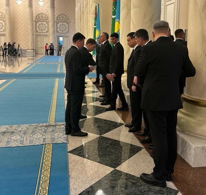 Когда в Акорде началась церемония встречи, контраст между делегациями стал еще ярче. Туркменские чиновники кланялись, пожимая руку президенту Казахстана, и не поднимали голову. И не поворачивались вслед президентам, а смотрели строго перед собой. Выправка туркменской делегации почти хореографическая.