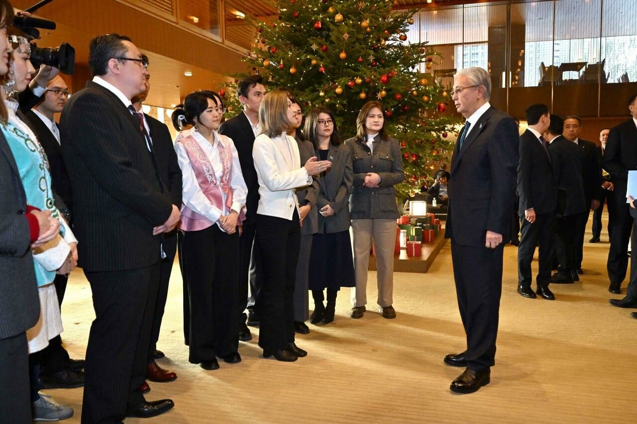 После храма у президента началась серия встреч без пауз. Первая - с казахстанцами, живущими и работающими по всей Японии. Их было 22 человека: студенты, учёные, врачи, айтишники, консультанты.