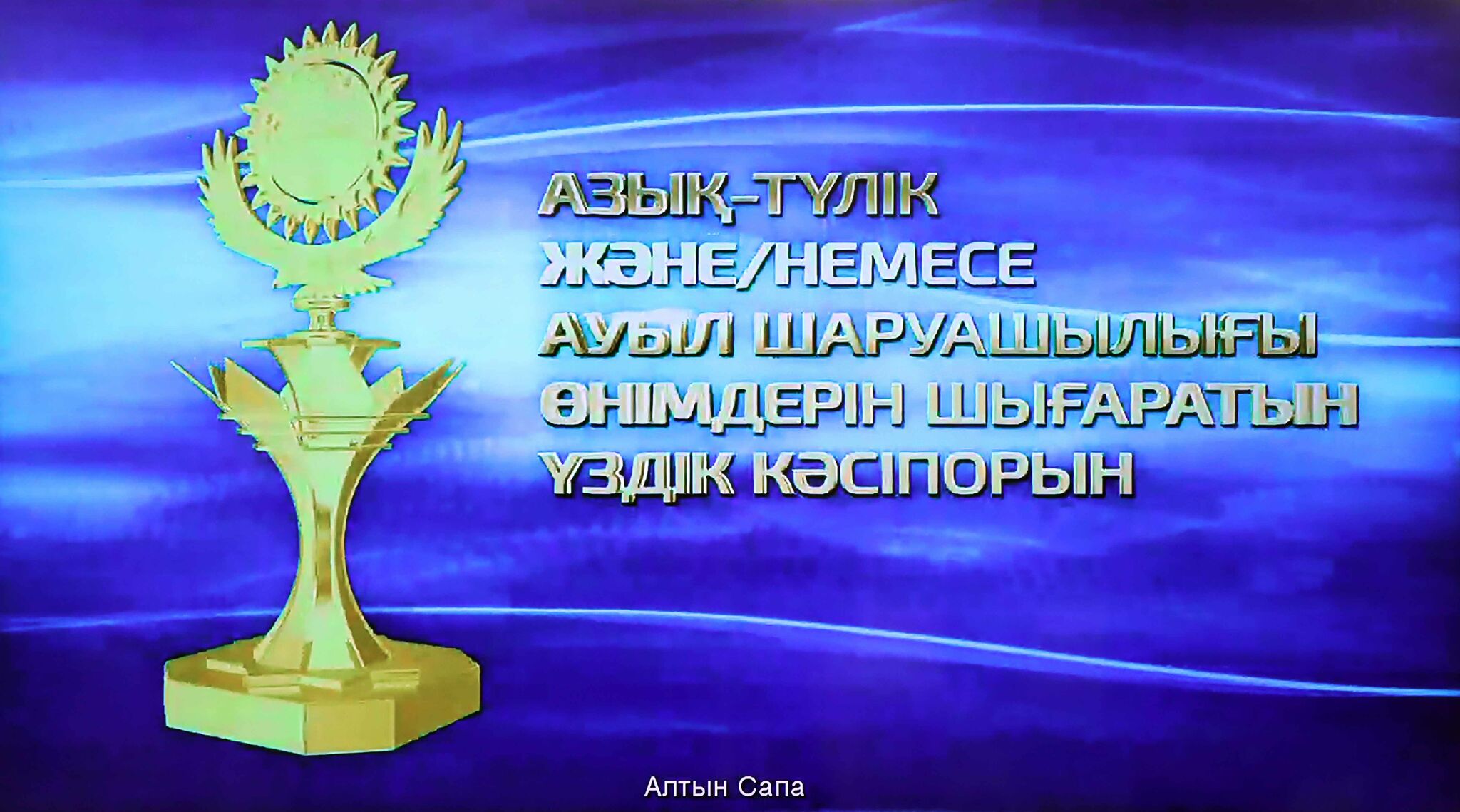 Также лауреатами конкурса «Алтын сапа» в 2020 году стали в номинации «Лучшее предприятие производственного назначения» – ТОО «Алматинский завод мостовых конструкций (АЗМК)» (г. Алматы), ТОО «МАКС дорстройсервис – 21» (Алматинская область), ТОО «Стадболт Мануфактуринг» (Атырауская область); в номинации «Лучшее предприятие, выпускающее товары для населения» – ИП «GrandMiks» (Туркестанская область), ТОО «ПО «Глобал-Спецодежда» (Актюбинская область), ИП «Дана-Дель» (Жамбылская область); в номинации «Лучшее предприятие, оказывающее услуги» – «Университет «Туран» (г. Алматы), ТОО «СКФ «Отделстрой» (Западно-Казахстанская область), ТОО «Центр Элит-НС» (г. Нур-Султан); в номинации «Лучшее предприятие, выпускающее продовольственные товары и/или сельскохозяйственную продукцию» – ТОО «ХБК «Аксай» (г. Алматы), ТОО «Нәтиже «Сүт Фабрикасы» (Карагандинская область), крестьянское хозяйство «Пасека» (Восточно-Казахстанская область).