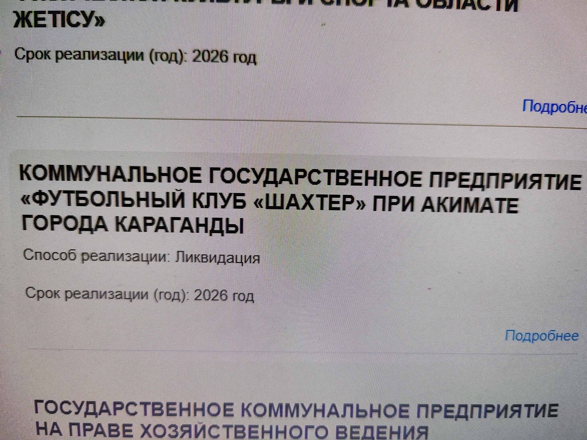 А еще в этом перечне почему-то значатся сразу два карагандинских клуба «Шахтер». Один выставляется на продажу, а другой – на ликвидацию. Может, кто-то таким незамысловатым способом решил похоронить все долги горняков, но ликвидация ведь тоже не приватизация.