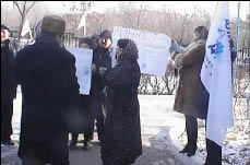 Актюбинские активисты незарегистрированной партии “Алга!” провели пикет возле здания местного департамента юстиции.