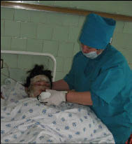 18-летняя Жадыра ИСАБЕК (на снимке). У девушки обожжено 6 процентов тела. Медсестры говорят: боль и страдания Жадыра переносит терпеливо, однако при встрече с журналистами начинает волноваться. Едва размыкая опаленные огнем губы, больная шепчет: