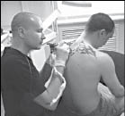 мастер тату Вячеслав РОМАШОВ (на снимке), набив очередную картину на коже за 16 часов беспрерывной работы.