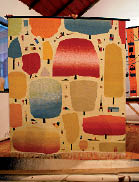 В мастерской просторно и уютно. Творческого беспорядка нет: сказывается женская рука Сауле. Кругом - разноцветные гобелены и войлок, ткацкие станки, бобины с нитками и много шерсти.