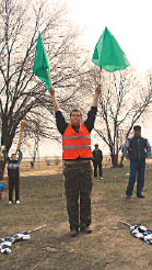 Два экипажа стартуют одновременно и за считанные секунды пролетают два круга. На крутых виражах машины так заносит, что зрителей обдает душем из песка. Больше всех счастливы пацаны: еще бы - столько гоночных машин!