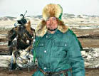 беркутчи Иманзаип ТАСЫБАЕВ учит местных пацанов охоте с ловчими птицами.