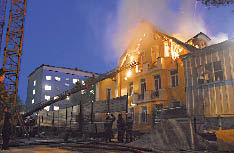 Поздно вечером в минувший понедельник произошел крупный пожар в трехэтажном офисном здании