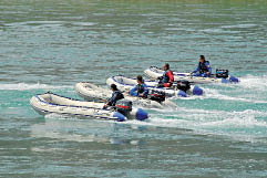 Ми-171, способный выполнять полеты в любых погодных условиях и даже ночью. На нем установлено специальное водосливное устройство для сброса воды на место возгорания. За четыре секунды на огонь обрушивается 3 тонны H2O - и языки пламени отступают. А вот по Или мчится на выручку тонущему лодка водно-спасательной службы. Несколько мгновений - и потерпевший доставлен на берег, где ему оказывают первую доврачебную помощь. Только за четыре месяца этого года водные спасатели республики выручили из беды более 300 человек.