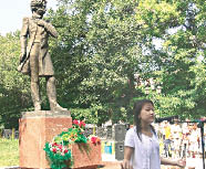 Сначала, как обычно, звучали нетленные пушкинские строки. Их прочли ученики таразских гимназий. А потом наступил самый приятный момент: вручение грамот и призов от Русской общины активным участникам завершающихся у этого памятника Дней славянской письменности и культуры. Ими оказались обладательница Гран-при и призеры конкурса чтецов