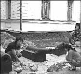 Несмотря на наши бурные протесты, старинную мостовую снова закатали толстым слоем асфальта. К счастью, часть камней, выброшенных рабочими на обочину, спас Валерий Колбин. Он собственноручно вывез их на тележке!