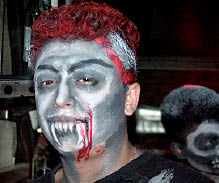В этот день положено переодеваться во всякую нечисть и гудеть не бездумно, а на тему ужастиков. Практически все алматинские ночные клубы обещают бесплатный вход или большую скидку тем, кто в вечер Хеллоуина заявится в костюме или гриме. Но на практике, если профессионалы хотят действительно запредельную ночь, то нанимают команду гримеров-стилистов. Например, Настя Доронина уже стала специалистом по кошмарам. В этот день с командой помощников она, как обычно, будет работать не покладая рук с восьми вечера примерно до двух часов ночи. За это время они успеют обслужить не меньше двух точек. Сначала в упырей и ведьм превратятся сотрудники клубов, потом стриптизерши, потом завсегдатаи “ночника”.