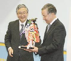 Посол Японии в Казахстане Сигэо НАЦУИ задарил карагандинским чиновникам национальную куклу, приносящую удачу.