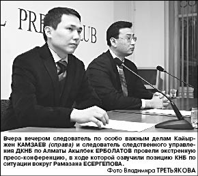 29 ноября 2008 года департаментом КНБ РК по г. Алматы в рамках исполнения поручения следователя ДКНБ РК по Жамбылской области согласно санкции прокуратуры г. Тараза, в присутствии понятых и при видеодокументировании, произведены обыски по месту жительства и работы главного редактора газеты “Алма-Ата ИНФО” Р. ЕСЕРГЕПОВА и журналиста этой же редакции М. ХОДЖАМУРАТОВА. По результатам произведенных обысков изъяты опубликованные секретные материалы.