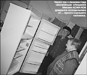 Михаил Константинович хотел нескромно заказать автомобиль: а вдруг и вправду сдержат слово? А потом подумал и решил: зачем ему в его возрасте такой шикарный подарок, которым он не сможет воспользоваться? И так еле передвигает ноги. И тогда фронтовик сказал: если можно, дайте новый холодильник, так как старенький, видавший виды “Днепр”, может в любой момент сломаться. Его ободрили :