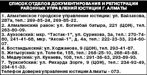 - Если ваша жена зарегистрирована в Таразе, то необязательно ехать туда. Необходимо обратиться в органы юстиции того района, где она будет зарегистрирована. Нужно написать заявление, чтобы ее выписали с прежнего места прописки в Таразе и направили листок убытия в Алматы. На основании этого документа вас должны зарегистрировать и продокументировать в южной столицы.