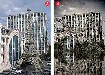 Десятки специалистов откликнулись на призыв и засели за “Фотошоп” и “Фотопэйнт”. И вот что получилось. Дизайнер Висмут предположил, что Третья мировая война неизбежна, как неизбежно и участие в ней нашей страны. Итог конфликта - китайский танк на площади Республики и полуразрушенный монумент Независимости (фото 1, 2). Коллега Висмута Escalier предсказывает обрушение на Алматы крупных метеоритов. После чего проспект Аль-Фараби оказывается усеян ржавыми машинами, а из новостройки торчит обгоревший корпус авиалайнера. Сюжет автора k.k более правдоподобен: дизайнер представил, как глобальное потепление аукнулось массовым таянием льдов Заилийского Алатау, вода которых подмыла основание копии Эйфелевой башни у Французского дома, отчего та накренилась похлеще пизанской коллеги (фото 3, 4). А дизайнер chi предположил, что человечество способно умереть просто так, от апатии, отчего земля превратится в рай, где мох и плющ покрывают бетон и ржавчину, а из нижних этажей высоток хлещут водопады.