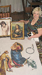 Розалия ЭКЕМСЕЕВА (на снимке) давно доказала, что нитками и иголкой тоже можно рисовать! Вышитые крестиком копии шедевров мировой живописи поражают удивительным сходством с оригиналом. Но вот полотно внушительных размеров - 1,20 м на 85 см - она создает впервые. И это будет “Сикстинская Мадонна” Рафаэля.