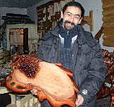 резчик по дереву Василий ДЖАН (на снимке), повар по образованию и рыцарь по призванию, все свободное время посвящает клубу исторической реконструкции. Переодевание в средневековые одежды и поединки на мечах в конце концов подвигли его к совершению весьма рискованного поступка. На днях он изготовил из кедра традиционное казахское блюдо для мяса - астау - в римском стиле.
